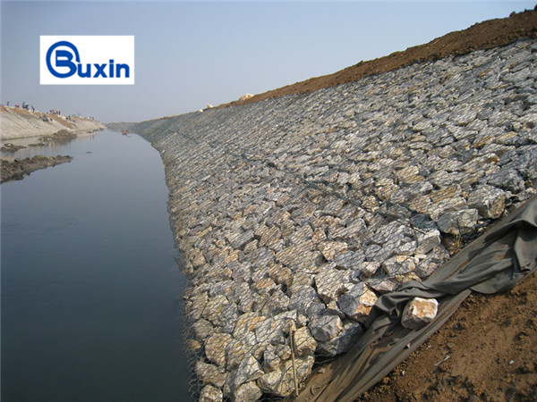 石笼护坡由高抗腐蚀、高强度、具有延展性的低碳钢丝或者包覆PVC的以上钢丝使用机械编织而成,使用该网制成的箱型结构就是石笼网。
