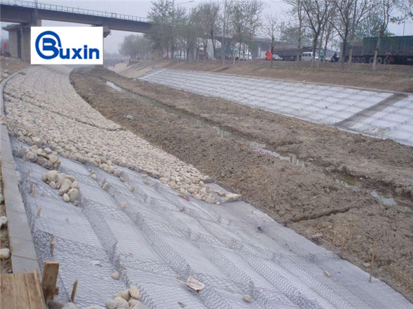 在石笼网箱内装填块石或天然鹅卵石,铺在边坡上,形成天然屏障,就地取材,不破坏生态环境,因地制宜,更好的治理了边坡防护。